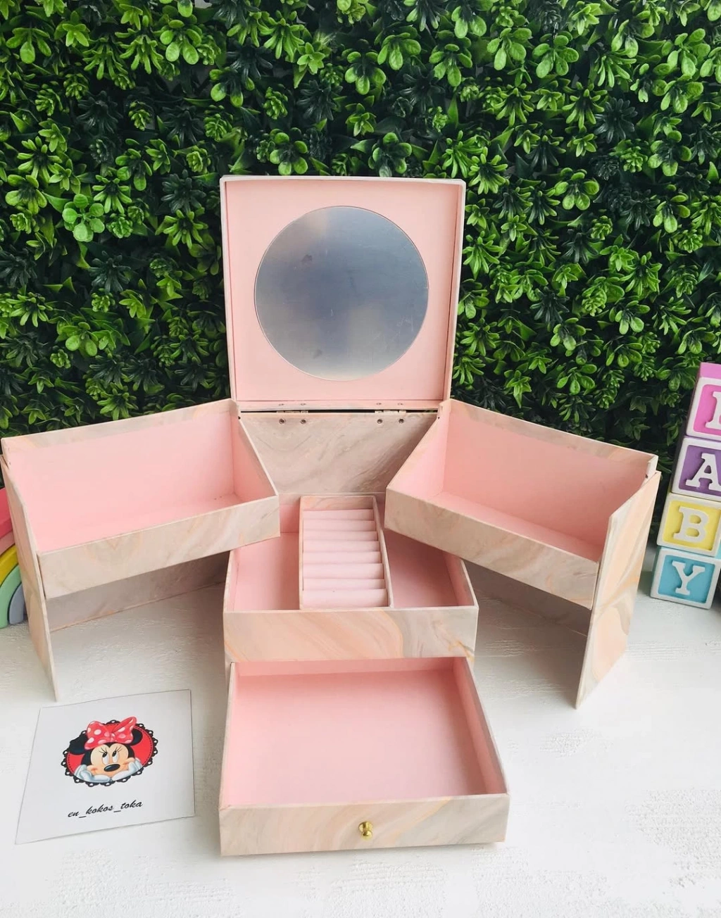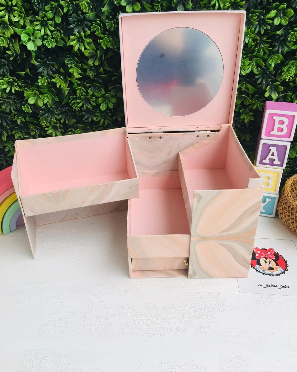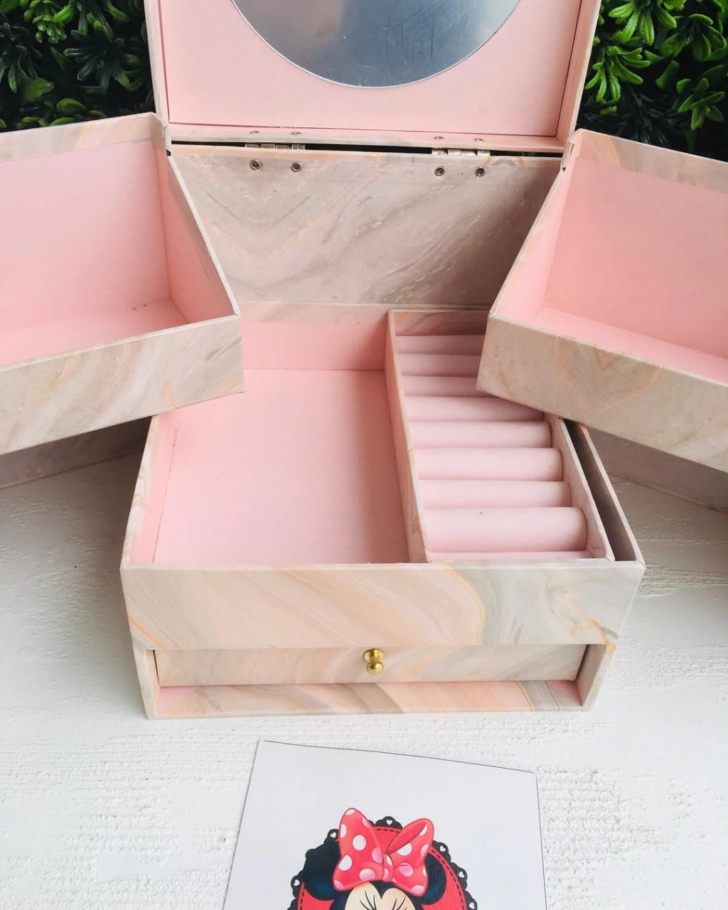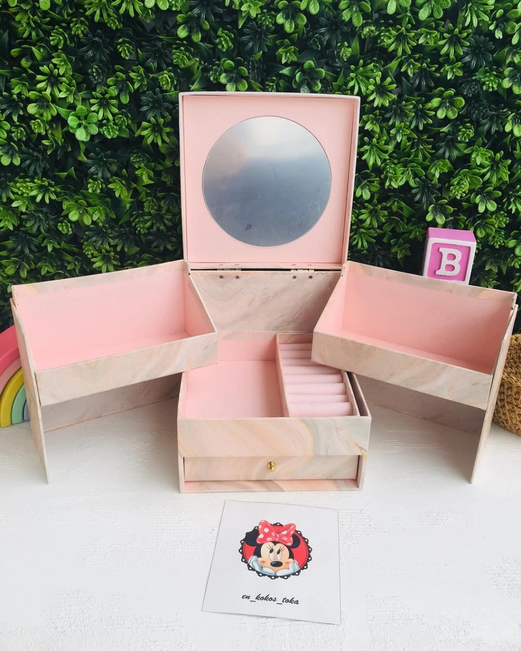 Çekmeceli Ayna Detaylı Büyük Boy Takı Toka kutusu